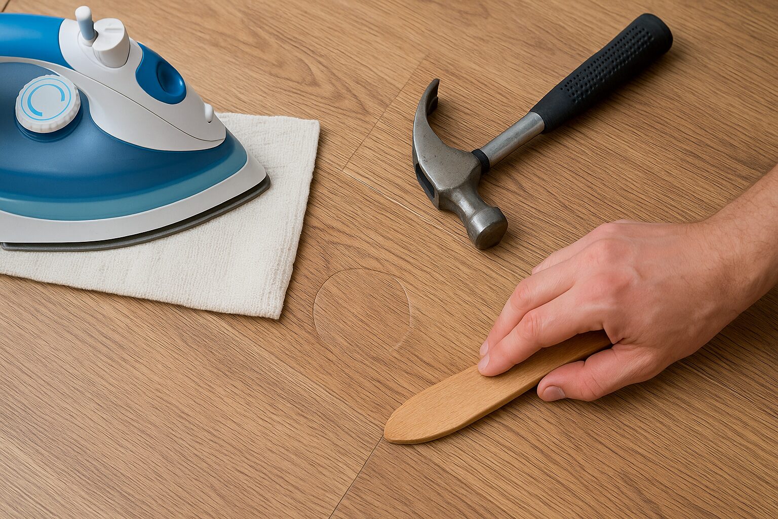 L’alternative du fer à repasser s’avère redoutable : je place un chiffon humide sur la zone enfoncée et j’applique le fer chaud sans vapeur. Attention par contre à ne jamais poser directement l’appareil sur le sol ! Cette méthode demande une surveillance constante pour éviter la surchauffe du revêtement.